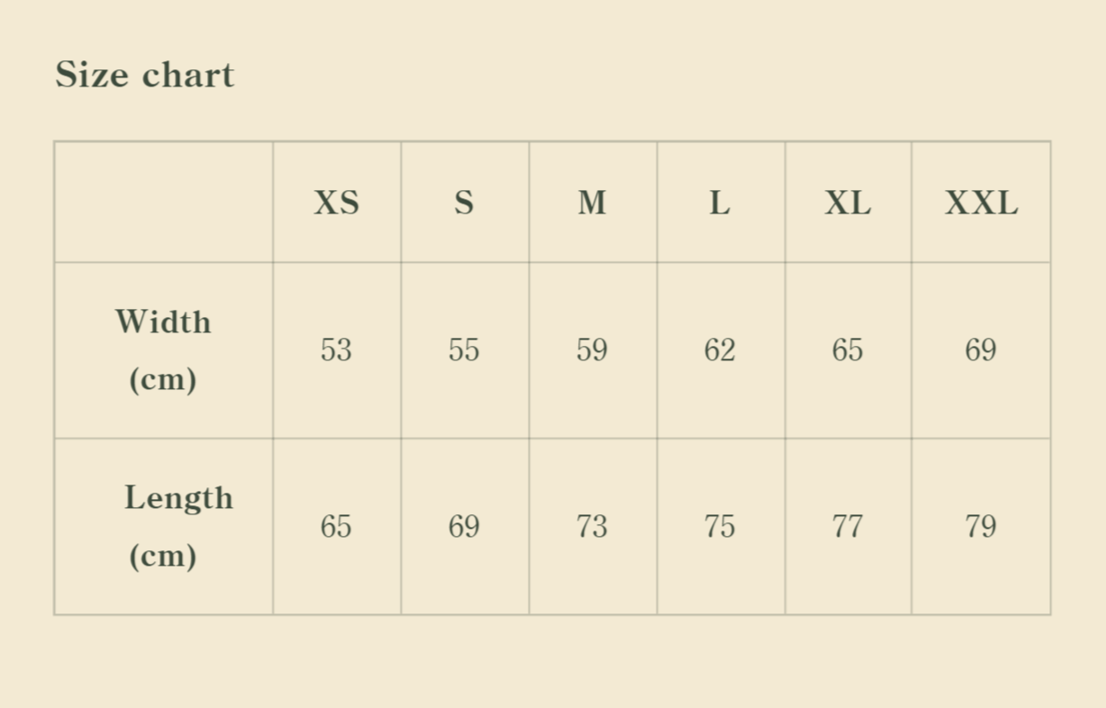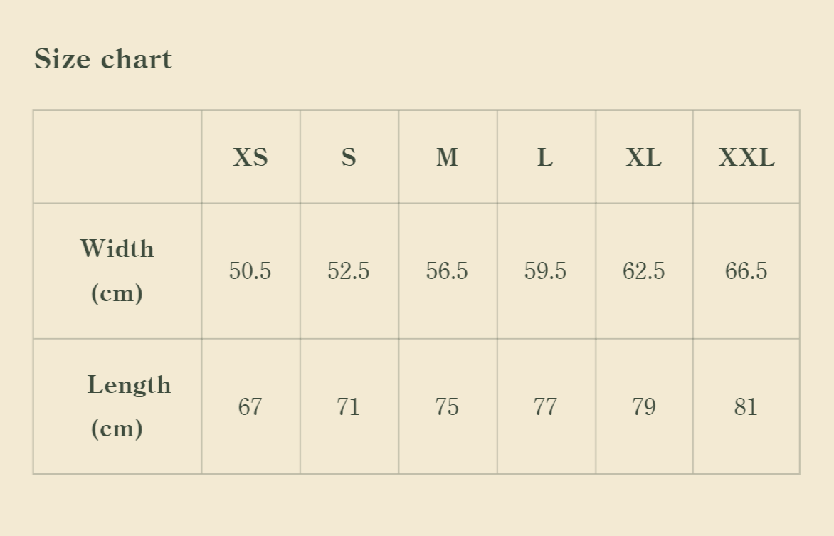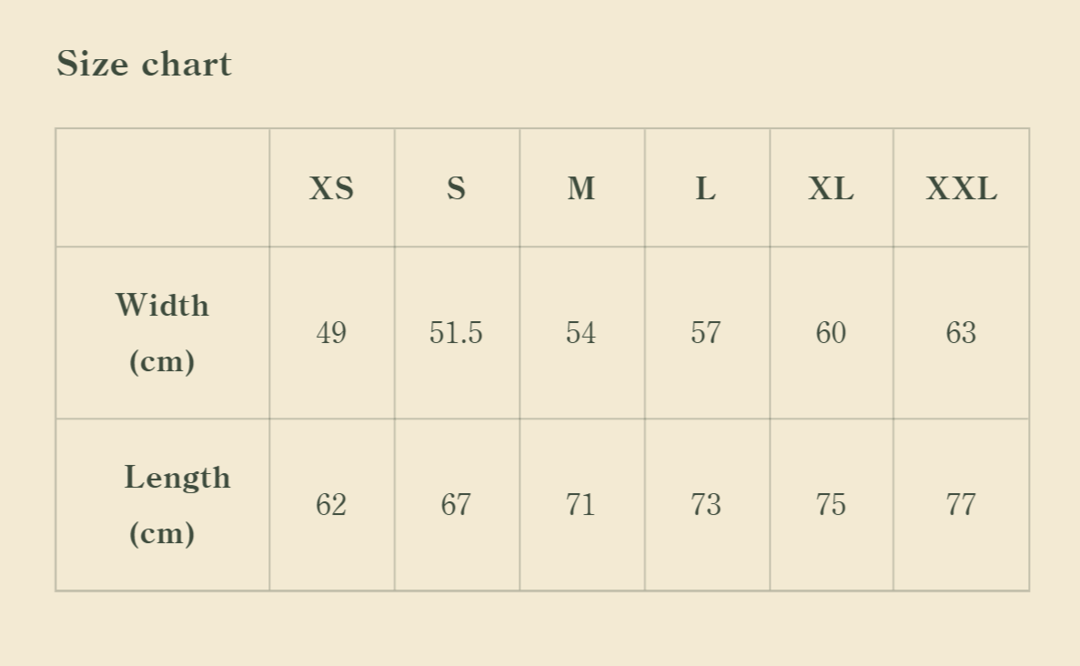 Our t-shirts are designed to be oversized, so they naturally have a roomier fit. If you’re debating between two sizes, we recommend choosing the smaller one to achieve the intended look. For example, if your usual size is a Large, a Medium will give you the perfect oversized style without feeling too loose.